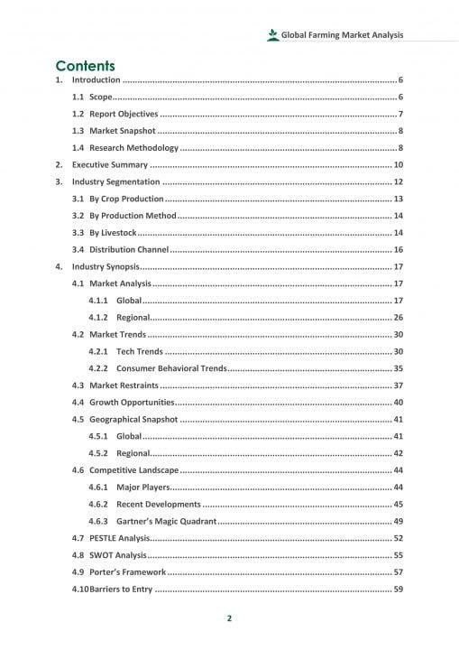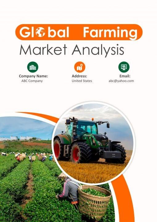 This Global Farming Market Analysis Pdf Word Document is a primer on how to capitalize on business opportunities through planning, innovation, and market intelligence. The content-ready format of the complete deck will make your job as a decision-maker a lot easier. Use this ready-made PowerPoint Template to help you outline an extensive and legible plan to capture markets and grow your company on the right path, at an exponential pace. What is even more amazing is that this presentation is completely editable and 100 percent customizable. This seventy four slide complete deck helps you impress a roomful of people with your expertise in business and even presentation. Craft such a professional and appealing presentation for that amazing recall value. Download now.