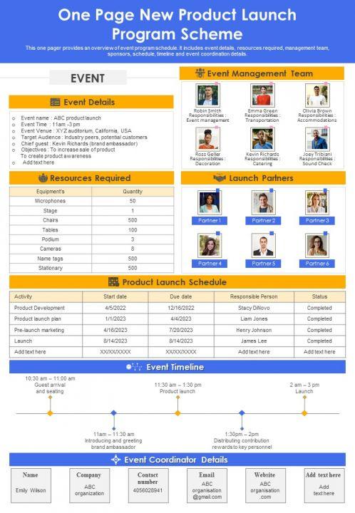 Heres a predesigned One Page New Product Launch Program Scheme PDF Document PPT Template for you. Built on extensive research and analysis, this one-pager template has all the centerpieces of your specific requirements. This temple exudes brilliance and professionalism. Being completely editable, you can make changes to suit your purpose. Get this One Page New Product Launch Program Scheme PDF Document PPT Template Download now.