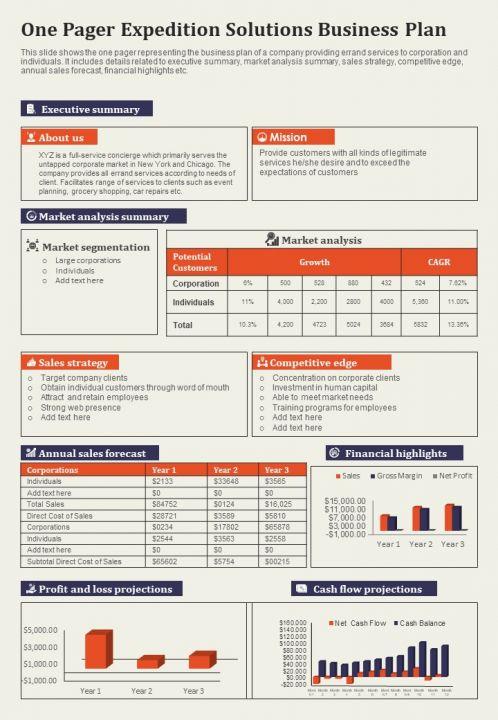Heres a predesigned One Pager Expedition Solutions Business Plan PDF Document PPT Template for you. Built on extensive research and analysis, this one-pager template has all the centerpieces of your specific requirements. This temple exudes brilliance and professionalism. Being completely editable, you can make changes to suit your purpose. Get this One Pager Expedition Solutions Business Plan PDF Document PPT Template Download now.