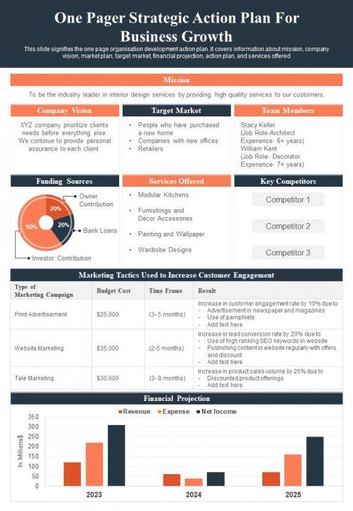 Presenting you a fantastic One Pager Strategic Action Plan For Business Growth PDF Document PPT Template. This one-pager document is crafted on hours of research and professional design efforts to ensure you have the best resource. It is completely editable and its design allow you to rehash its elements to suit your needs. Get this One Pager Strategic Action Plan For Business Growth PDF Document PPT Template Download now.