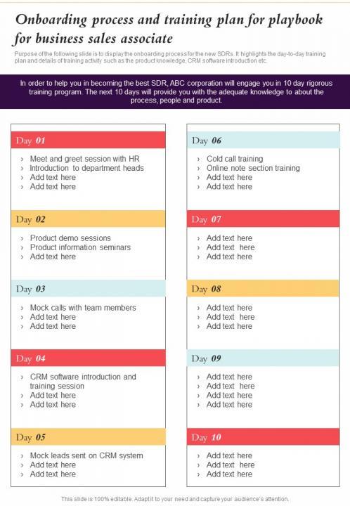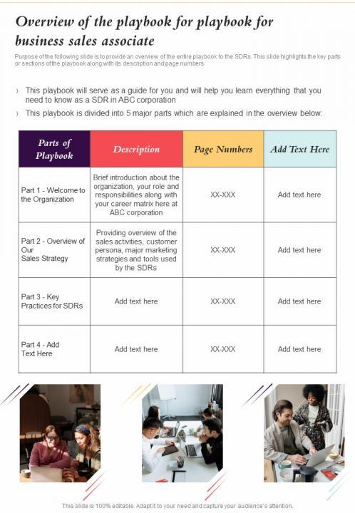 Are you tired of boring presentations that fail to captivate your audience Look no further than our Playbook For Business Sales Associate Template. It is designed to impress and capture attention. With 100 percent editable slides and visually-stunning graphics, you will be able to create presentations that wow. Do not settle for mediocrity, elevate your game with our A4 Playbook PPT Template.