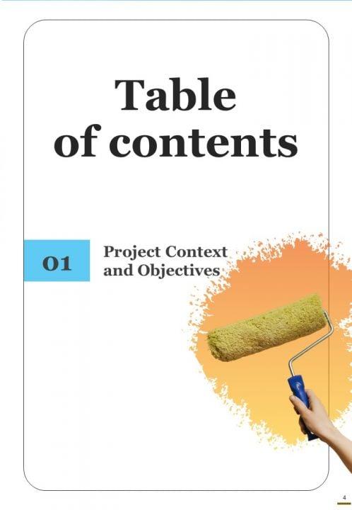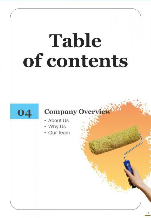 Presenting you an exemplary Proposal For Premium Painting Services Table Of Contents One Pager Sample Example Document. Our one-pager comprises all the must-have essentials of an inclusive document. You can edit it with ease, as its layout is completely editable. With such freedom, you can tweak its design and other elements to your requirements. Download this Proposal For Premium Painting Services Table Of Contents One Pager Sample Example Document brilliant piece now.