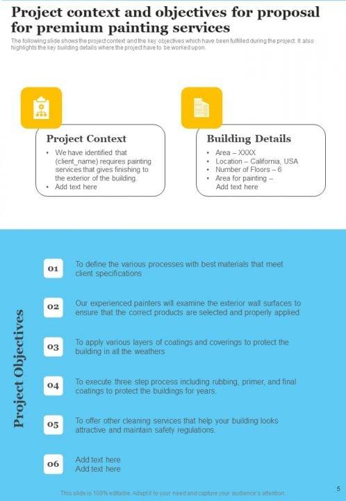 Here is a predesigned Proposal For Premium Painting Services Example Document Report Doc Pdf Ppt for you. Built on extensive research and analysis, this one-complete deck has all the center pieces of your specific requirements. This temple exudes brilliance and professionalism. Being completely editable, you can make changes to suit your purpose. Get this Proposal For Premium Painting Services Example Document Report Doc Pdf Ppt A4 One-pager now.