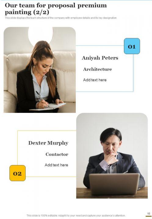 Presenting you an exemplary Our Team For Proposal Premium Painting One Pager Sample Example Document. Our one-pager comprises all the must-have essentials of an inclusive document. You can edit it with ease, as its layout is completely editable. With such freedom, you can tweak its design and other elements to your requirements. Download this Our Team For Proposal Premium Painting One Pager Sample Example Document brilliant piece now.