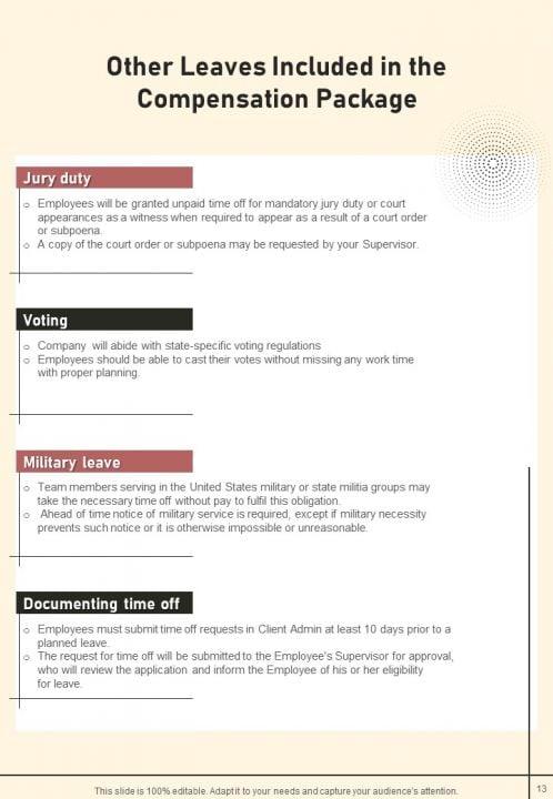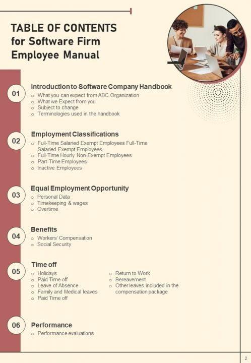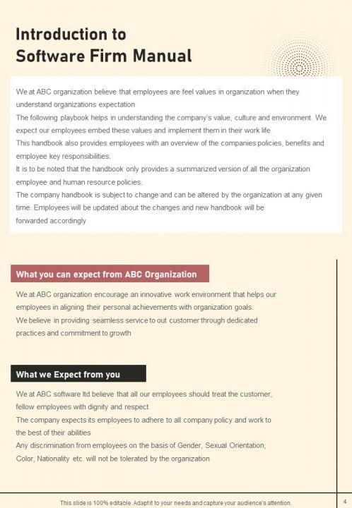 Unleash your creativity with the Software Firm Employee Manual Handbook PPT Template. Craft visually-appealing handbooks effortlessly. Our 100 percent editable template offers flexibility, while our team of experts has already done the research for you. Say goodbye to time-consuming content creation personalize the template and create captivating handbooks in no time.