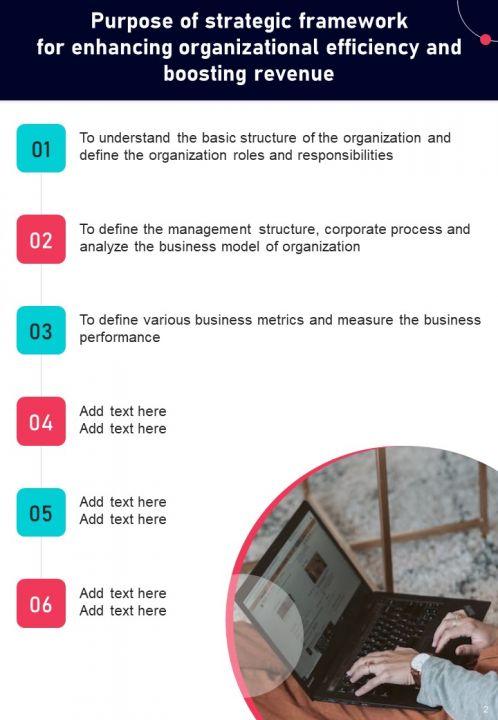 Are you tired of boring presentations that fail to captivate your audience Look no further than our Strategic Framework For Enhancing Organizational Efficiency And Boosting Revenue Template. It is designed to impress and capture attention. With 100 percent editable slides and visually-stunning graphics, you will be able to create presentations that wow. Do not settle for mediocrity, elevate your game with our A4 Playbook PPT Template.