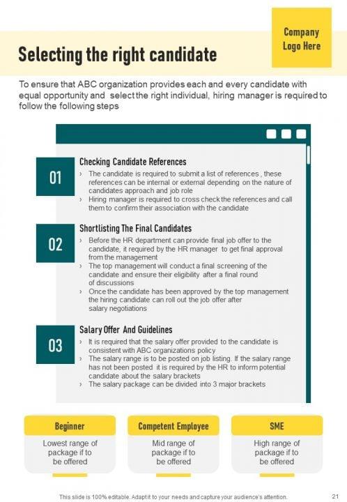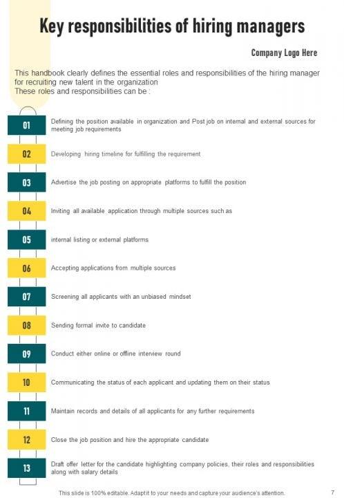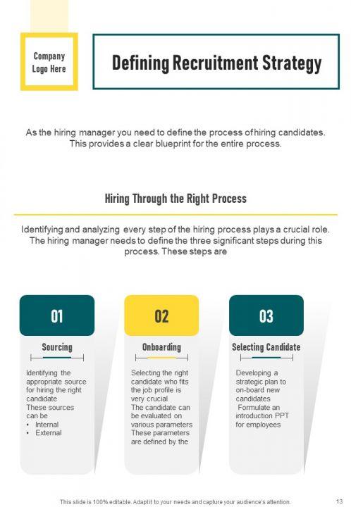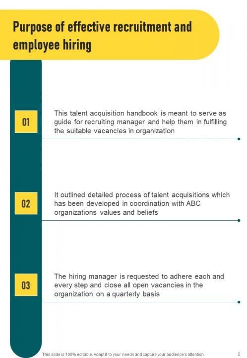 Empower your presentations with the Talent Acquisition And Hiring Handbook PPT Template. Craft engaging handbooks that captivate your audience. Our 100 percent editable template provides flexibility, while our expertly crafted content saves you time and effort. There is no need for extensive research simply personalize the template and create compelling handbooks effortlessly.