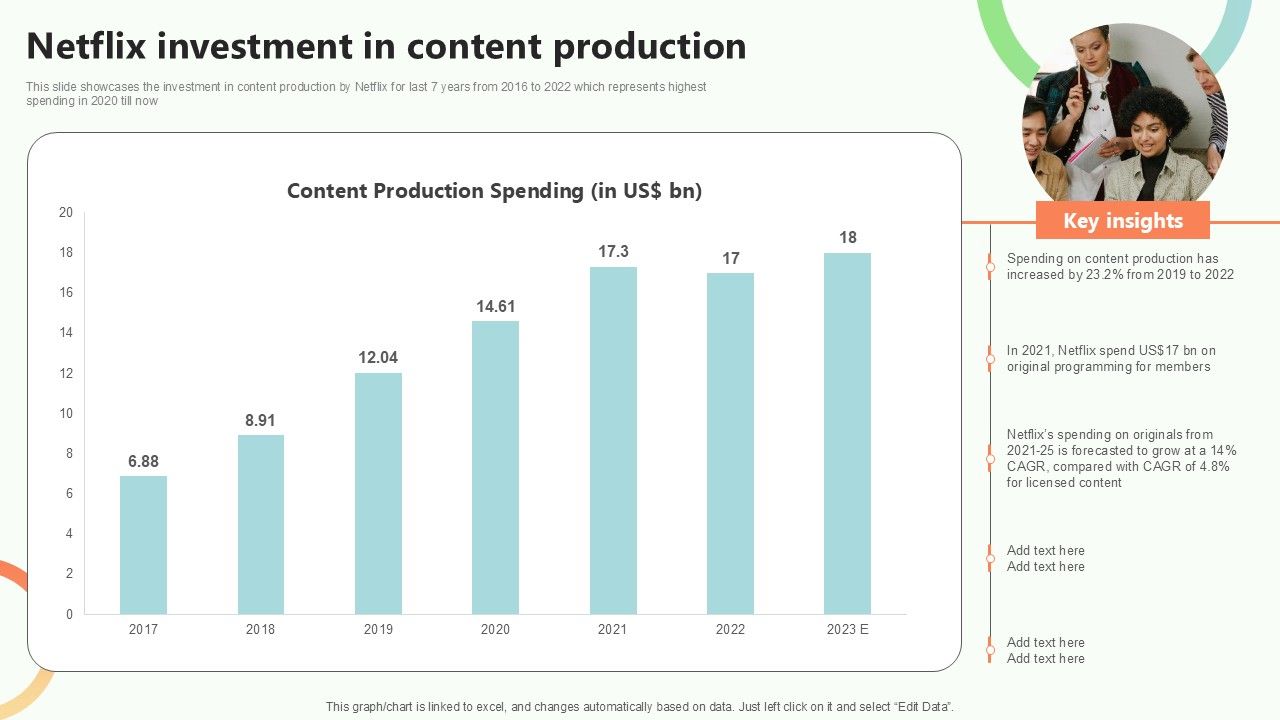 This slide showcases the investment in content production by Netflix for last 7 years from 2016 to 2022 which represents highest spending in 2020 till now If your project calls for a presentation, then Slidegeeks is your go to partner because we have professionally designed, easy to edit templates that are perfect for any presentation. After downloading, you can easily edit Online Video Content Provider Business Profile Netflix Investment In Content Production Topics PDF and make the changes accordingly. You can rearrange slides or fill them with different images. Check out all the handy templates