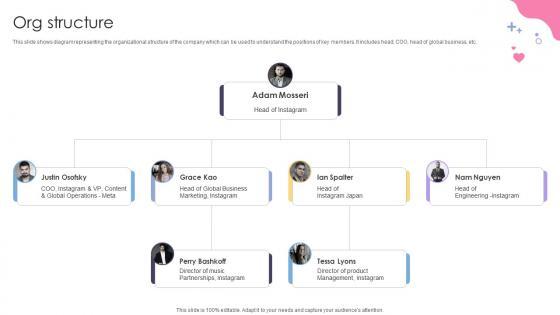 This slide shows diagram representing the organizational structure of the company which can be used to understand the positions of key members. It includes head, COO, head of global business, etc. Crafting an eye-catching presentation has never been more straightforward. Let your presentation shine with this tasteful yet straightforward Org Structure Social Media Application Development Company Fundraising Pitch Deck template. It offers a minimalistic and classy look that is great for making a statement. The colors have been employed intelligently to add a bit of playfulness while still remaining professional. Construct the ideal Org Structure Social Media Application Development Company Fundraising Pitch Deck that effortlessly grabs the attention of your audience Begin now and be certain to wow your customers