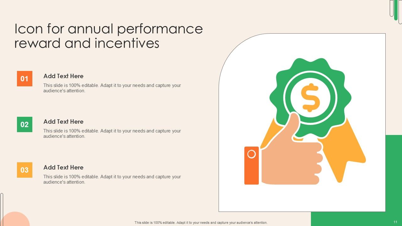 This Performance Incentive Ppt PowerPoint Presentation Complete Deck With Slides acts as backup support for your ideas, vision, thoughts, etc. Use it to present a thorough understanding of the topic. This PPT slideshow can be utilized for both in-house and outside presentations depending upon your needs and business demands. Entailing twelve slides with a consistent design and theme, this template will make a solid use case. As it is intuitively designed, it suits every business vertical and industry. All you have to do is make a few tweaks in the content or any other component to design unique presentations. The biggest advantage of this complete deck is that it can be personalized multiple times once downloaded. The color, design, shapes, and other elements are free to modify to add personal touches. You can also insert your logo design in this PPT layout. Therefore a well-thought and crafted presentation can be delivered with ease and precision by downloading this Performance Incentive Ppt PowerPoint Presentation Complete Deck With Slides PPT slideshow.