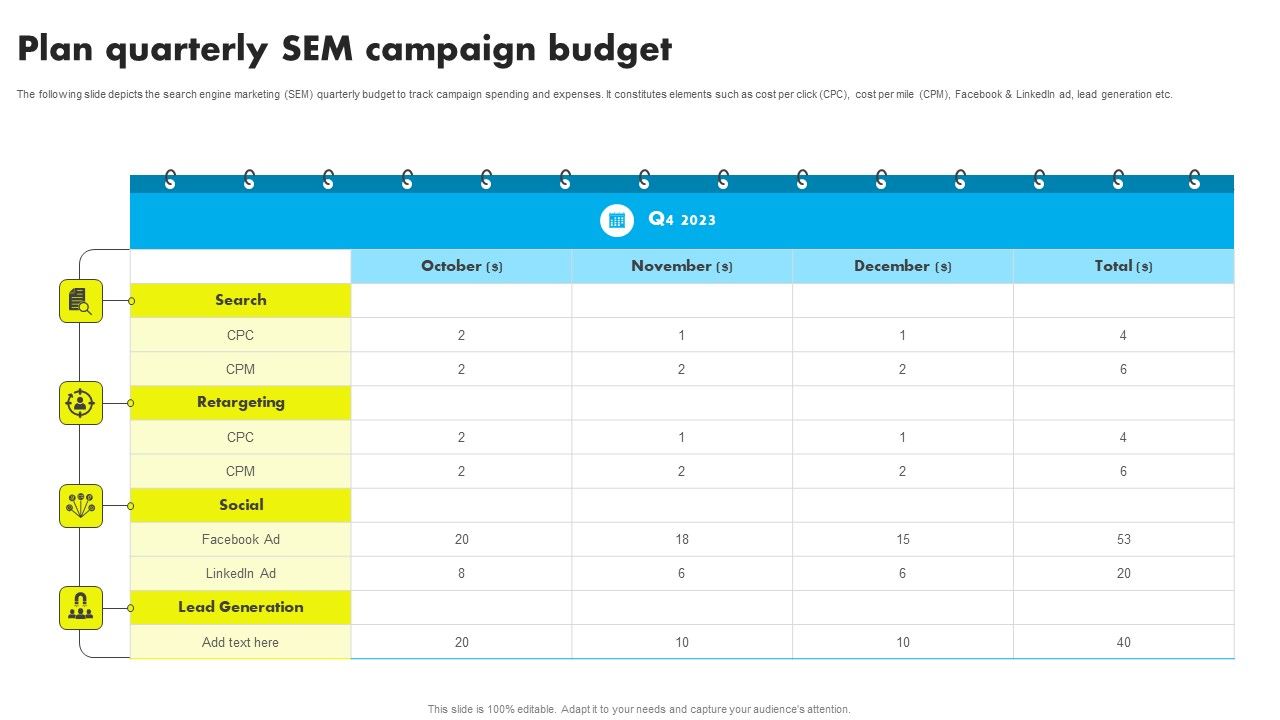 Plan Quarterly SEM Campaign Budget Implementing PPC Marketing Strategies To Increase Conversion Structure PDF