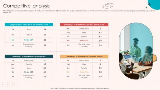 This slide covers comparison of the company with the top competitor based on different factors. The purpose of this template is to provide an overview on basis such as net promoter score, pricing scores, product quality, customer service, etc. Want to ace your presentation in front of a live audience Our Competitive Analysis Retail Merchandising Company Investor Funding Elevator Pitch Deck Ppt Slides can help you do that by engaging all the users towards you. Slidegeeks experts have put their efforts and expertise into creating these impeccable powerpoint presentations so that you can communicate your ideas clearly. Moreover, all the templates are customizable, and easy-to-edit and downloadable. Use these for both personal and commercial use.