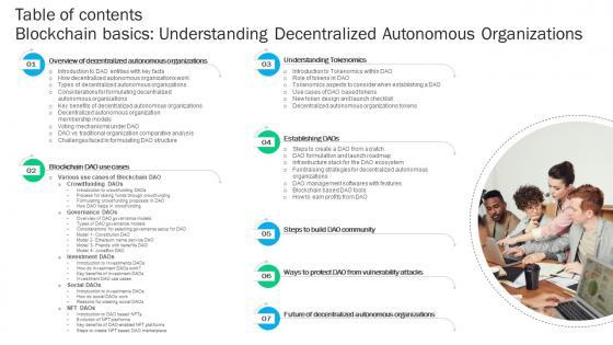 Crafting an eye-catching presentation has never been more straightforward. Let your presentation shine with this tasteful yet straightforward Table Of Contents Blockchain Basics Understanding Decentralized Autonomous Ppt Sample BCT SS V template. It offers a minimalistic and classy look that is great for making a statement. The colors have been employed intelligently to add a bit of playfulness while still remaining professional. Construct the ideal Table Of Contents Blockchain Basics Understanding Decentralized Autonomous Ppt Sample BCT SS V that effortlessly grabs the attention of your audience Begin now and be certain to wow your customers
