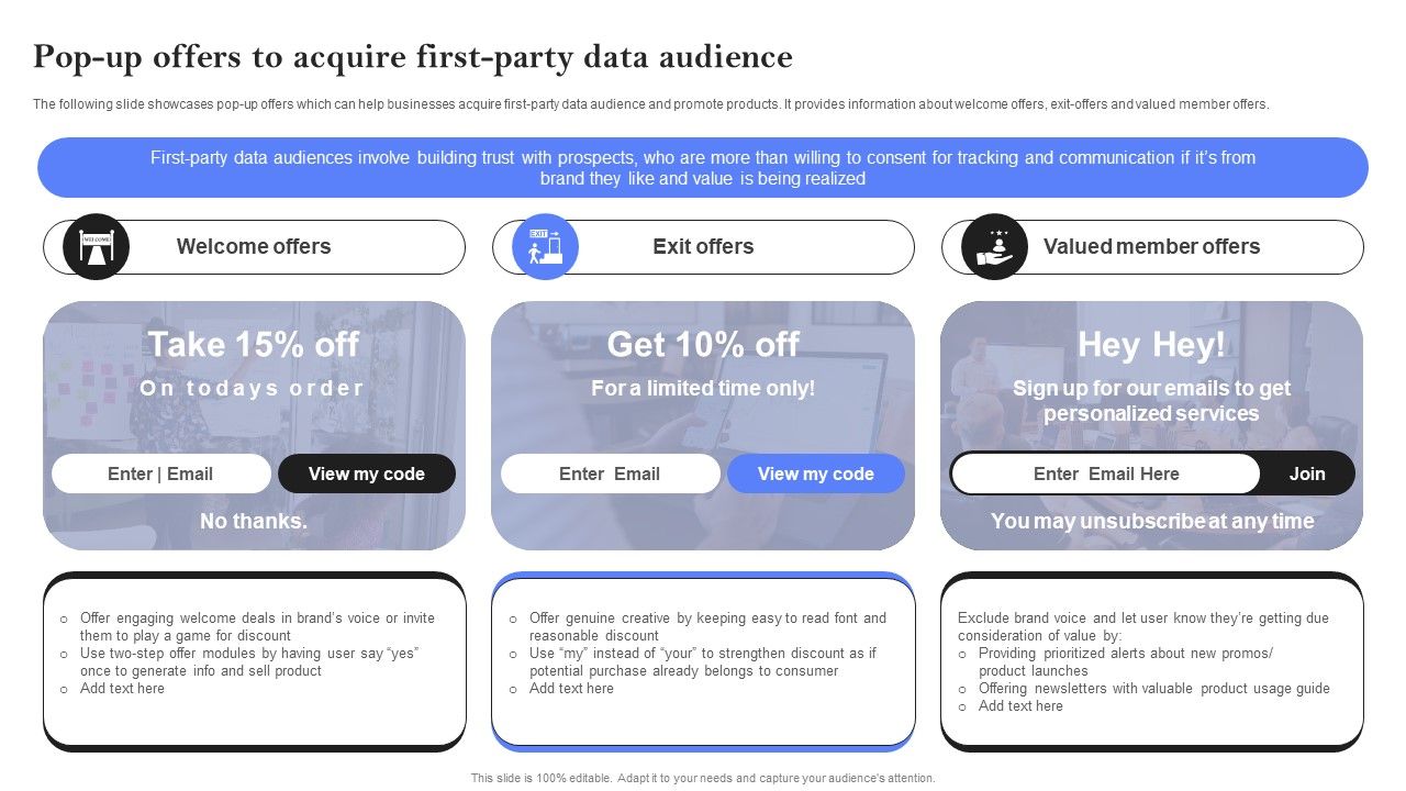 Pop Up Offers To Acquire First Party Data Audience Ppt PowerPoint Presentation File Styles PDF
