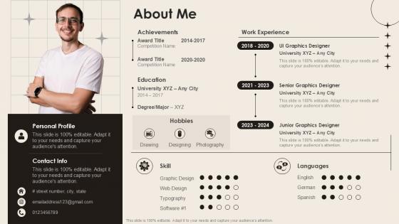 Find a pre-designed and impeccable About Me Personal Profile Ppt Powerpoint Presentation Summary Slide Download. The templates can ace your presentation without additional effort. You can download these easy-to-edit presentation templates to make your presentation stand out from others. So, what are you waiting for Download the template from Slidegeeks today and give a unique touch to your presentation. Create a canvas for your candidate with our About Me Personal Profile PPT PowerPoint Presentation Summary Slide Download. Boost the chances of selection.