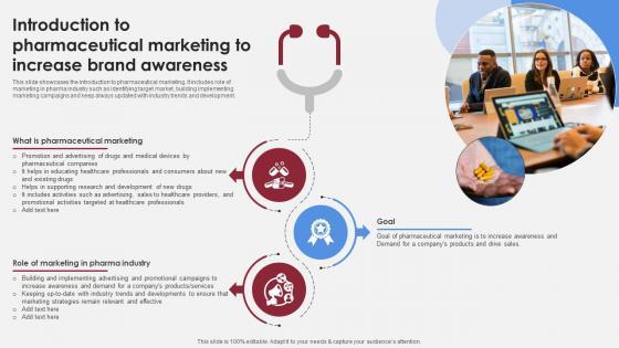 This slide showcases the introduction to pharmaceutical marketing. It includes role of marketing in pharma industry such as identifying target market, building implementing marketing campaigns and keep always updated with industry trends and development. Explore a selection of the finest Introduction To Pharmaceutical Marketing Accelerating Market Share And Profitability MKT SS V here. With a plethora of professionally designed and pre-made slide templates, you can quickly and easily find the right one for your upcoming presentation. You can use our Introduction To Pharmaceutical Marketing Accelerating Market Share And Profitability MKT SS V to effectively convey your message to a wider audience. Slidegeeks has done a lot of research before preparing these presentation templates. The content can be personalized and the slides are highly editable. Grab templates today from Slidegeeks. This slide showcases the introduction to pharmaceutical marketing. It includes role of marketing in pharma industry such as identifying target market, building implementing marketing campaigns and keep always updated with industry trends and development.