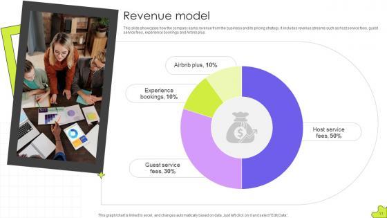 This slide showcases how the company earns revenue from the business and its pricing strategy. It includes revenue streams such as host service fees, guest service fees, experience bookings and Airbnb plus. Slidegeeks is one of the best resources for PowerPoint templates. You can download easily and regulate Revenue Model Guest Accommodation Service Business Model BMC SS V for your personal presentations from our wonderful collection. A few clicks is all it takes to discover and get the most relevant and appropriate templates. Use our Templates to add a unique zing and appeal to your presentation and meetings. All the slides are easy to edit and you can use them even for advertisement purposes. This slide showcases how the company earns revenue from the business and its pricing strategy. It includes revenue streams such as host service fees, guest service fees, experience bookings and Airbnb plus.
