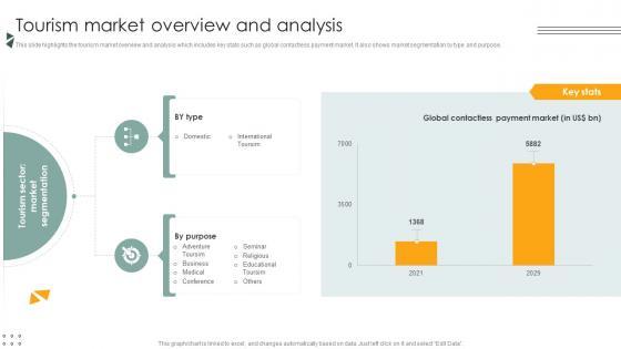 This slide highlights the tourism market overview and analysis which includes key stats such as global contactless payment market. It also shows market segmentation by type and purpose. Get a simple yet stunning designed Tourism Market Overview And Analysis Lodging And Accommodation Industry IR SS V. It is the best one to establish the tone in your meetings. It is an excellent way to make your presentations highly effective. So, download this PPT today from Slidegeeks and see the positive impacts. Our easy-to-edit Tourism Market Overview And Analysis Lodging And Accommodation Industry IR SS V can be your go-to option for all upcoming conferences and meetings. So, what are you waiting for Grab this template today. This slide highlights the tourism market overview and analysis which includes key stats such as global contactless payment market. It also shows market segmentation by type and purpose.