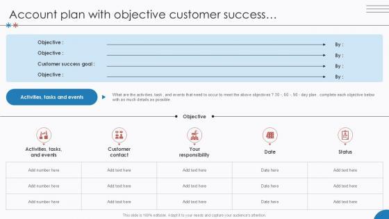 There are so many reasons you need a Account Plan With Objective Customer Success PPT Sample SS. The first reason is you can not spend time making everything from scratch, Thus, Slidegeeks has made presentation templates for you too. You can easily download these templates from our website easily. Our Account Plan With Objective Customer Success PPT Sample SS are topically designed to provide an attractive backdrop to any subject. Use them to look like a presentation pro.