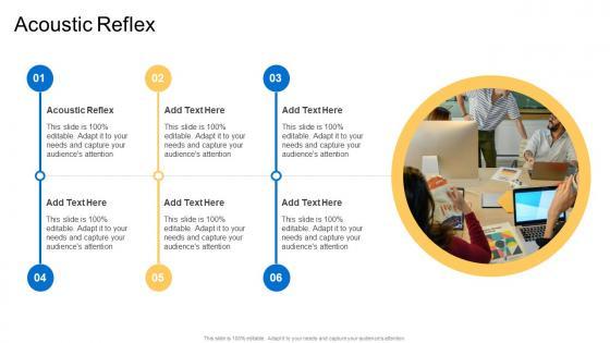 Introducing our well designed Acoustic Reflex In Powerpoint And Google Slides Cpb. This PowerPoint design presents information on topics like Acoustic Reflex. As it is predesigned it helps boost your confidence level. It also makes you a better presenter because of its high quality content and graphics. This PPT layout can be downloaded and used in different formats like PDF, PNG, and JPG. Not only this, it is available in both Standard Screen and Widescreen aspect ratios for your convenience. Therefore, click on the download button now to persuade and impress your audience. Our Acoustic Reflex In Powerpoint And Google Slides Cpb are topically designed to provide an attractive backdrop to any subject. Use them to look like a presentation pro.