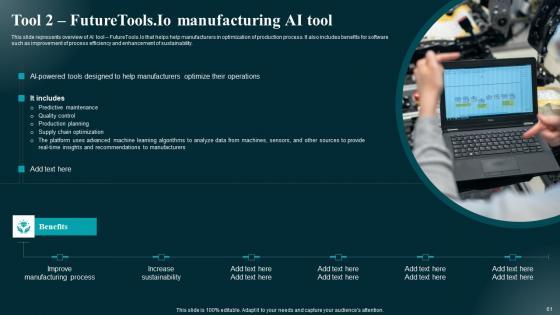 Use this Applications And Impact Of AI Tools Across Various Industries Complete Deck to ensure the business world gets to know you as a presentation expert with tremendous recall value. With its focus on providing the worlds best designs to highlight business ideas that have the potential to change the world, this PPT Template is sure to win you clients. The complete deck in one hundred eleven slides is a compendium of information, structured in a manner that provides the best framework for a presentation. Use this completely editable and customizable presentation to make an impact and improve your order book. Download now. Our Applications And Impact Of AI Tools Across Various Industries Complete Deck are topically designed to provide an attractive backdrop to any subject. Use them to look like a presentation pro.