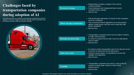 This is a Ai Effect On Business Across Various Industries Deploying Artificial Intelligence In Business Mockup PDF template with various stages. Focus and dispense information on one stage using this creative set, that comes with editable features. It contains large content boxes to add your information on topics like Transportation, Professional Services, Entertainment Media. You can also showcase facts, figures, and other relevant content using this PPT layout. Grab it now.
