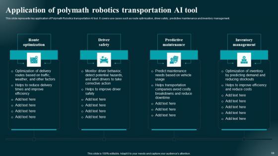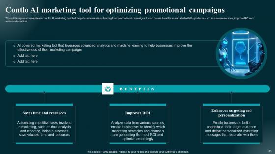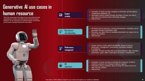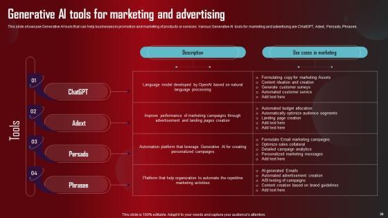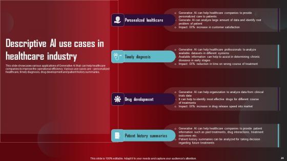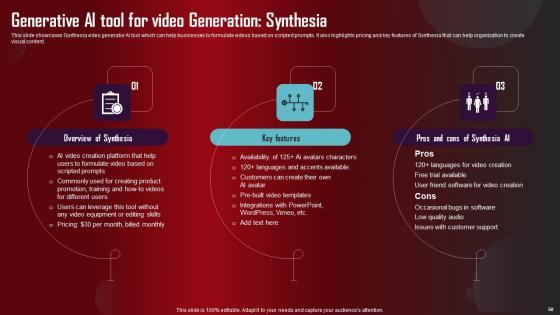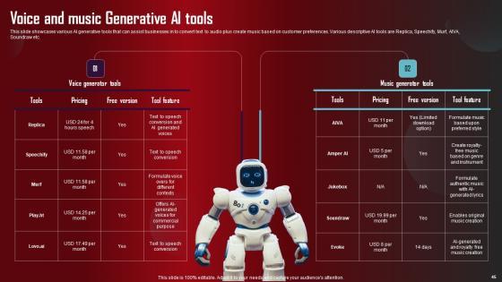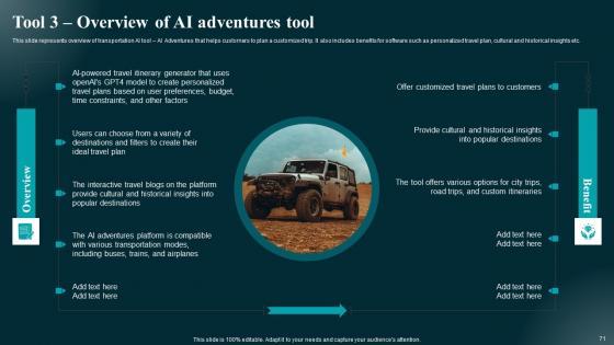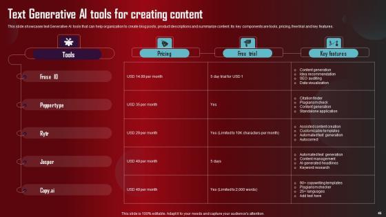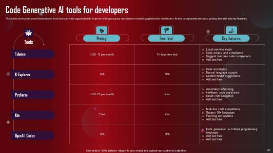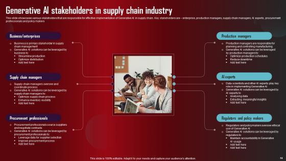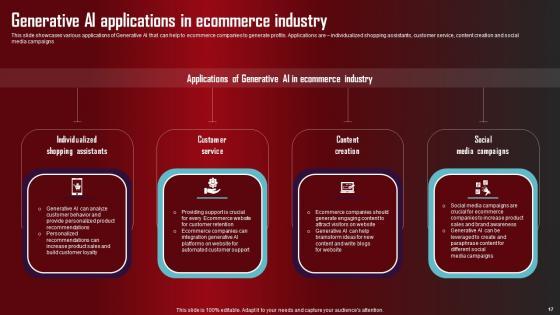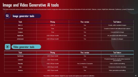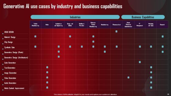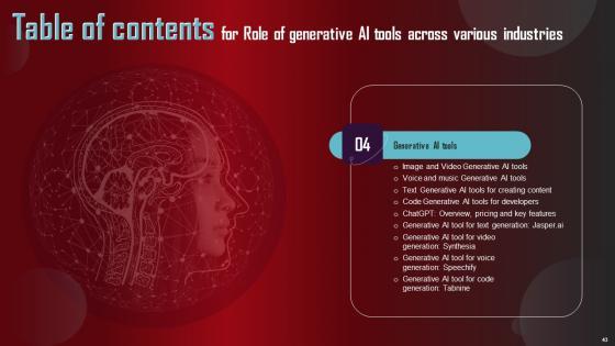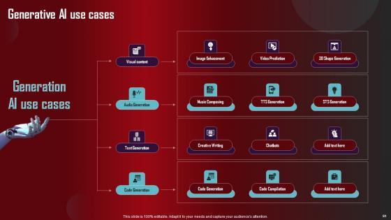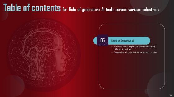 Take advantage of this well researched and professionally designed Role Of Generative AI Tools Across Various Industries Complete Deck to ace your next business meeting. Use this PPT complete deck to impress the management with your ideas for business growth and revenue increase. Use the Sixty eight slide Template Bundle to leave no stone unturned as you present each step of your process. Employ the visual tools within the slides such as graphs, charts, and tables to ensure that the audience can never look away from the presentation. With attractive visuals, easy to understand structure, and your knowledge, your presentation will have the attention it deserves. Download this PPT Template from the link below. Our Role Of Generative AI Tools Across Various Industries Complete Deck are topically designed to provide an attractive backdrop to any subject. Use them to look like a presentation pro.