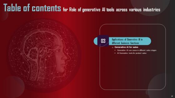 From laying roadmaps to briefing everything in detail, our templates are perfect for you. You can set the stage with your presentation slides. All you have to do is download these easy to edit and customizable templates. Role Of Generative AI Tools Across Various Industries Table Of Contents Introduction Pdf will help you deliver an outstanding performance that everyone would remember and praise you for. Do download this presentation today. Our Role Of Generative AI Tools Across Various Industries Table Of Contents Introduction Pdf are topically designed to provide an attractive backdrop to any subject. Use them to look like a presentation pro.