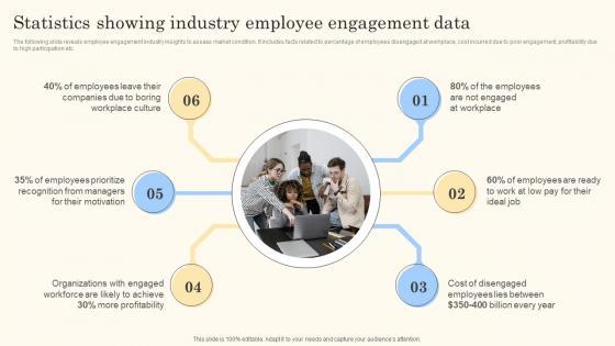 The following slide reveals employee engagement industry insights to assess market condition. It includes facts related to percentage of employees disengaged at workplace, cost incurred due to poor engagement, profitability due to high participation etc.Are you in need of a template that can accommodate all of your creative concepts This one is crafted professionally and can be altered to fit any style. Use it with Google Slides or PowerPoint. Include striking photographs, symbols, depictions, and other visuals. Fill, move around, or remove text boxes as desired. Test out color palettes and font mixtures. Edit and save your work, or work with colleagues. Download Statistics Showing Industry Employee Action Steps For Employee Engagement Demonstration Pdf and observe how to make your presentation outstanding. Give an impeccable presentation to your group and make your presentation unforgettable. The following slide reveals employee engagement industry insights to assess market condition. It includes facts related to percentage of employees disengaged at workplace, cost incurred due to poor engagement, profitability due to high participation etc.