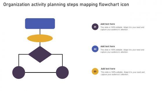 Showcasing this set of slides titled Organization Activity Planning Steps Mapping Flowchart Icon Template Pdf. The topics addressed in these templates are Organization Activity, Steps Mapping. All the content presented in this PPT design is completely editable. Download it and make adjustments in color, background, font etc. as per your unique business setting. Our Organization Activity Planning Steps Mapping Flowchart Icon Template Pdf are topically designed to provide an attractive backdrop to any subject. Use them to look like a presentation pro.