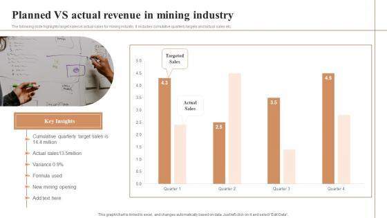 The following slide highlights target sales vs actual sales for mining industry. It includes cumulative quarterly targets and actual sales etc. Pitch your topic with ease and precision using this Planned Vs Actual Revenue In Mining Industry Slides Pdf This layout presents information on Targeted Sales, Actual Sales, Revenue In Mining Industry It is also available for immediate download and adjustment. So, changes can be made in the color, design, graphics or any other component to create a unique layout. The following slide highlights target sales vs actual sales for mining industry. It includes cumulative quarterly targets and actual sales etc.