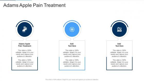 Introducing our well designed Adams Apple Pain Treatment In Powerpoint And Google Slides Cpb. This PowerPoint design presents information on topics like Adams Apple Pain Treatment. As it is predesigned it helps boost your confidence level. It also makes you a better presenter because of its high quality content and graphics. This PPT layout can be downloaded and used in different formats like PDF, PNG, and JPG. Not only this, it is available in both Standard Screen and Widescreen aspect ratios for your convenience. Therefore, click on the download button now to persuade and impress your audience. Our Adams Apple Pain Treatment In Powerpoint And Google Slides Cpb are topically designed to provide an attractive backdrop to any subject. Use them to look like a presentation pro.