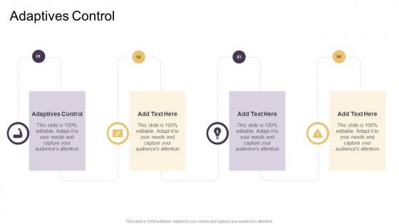 Introducing our well-designed Adaptives Control In Powerpoint And Google Slides Cpb. This PowerPoint design presents information on topics like Adaptives Control. As it is predesigned it helps boost your confidence level. It also makes you a better presenter because of its high-quality content and graphics. This PPT layout can be downloaded and used in different formats like PDF, PNG, and JPG. Not only this, it is available in both Standard Screen and Widescreen aspect ratios for your convenience. Therefore, click on the download button now to persuade and impress your audience. Our Adaptives Control In Powerpoint And Google Slides Cpb are topically designed to provide an attractive backdrop to any subject. Use them to look like a presentation pro.