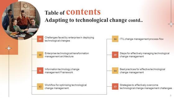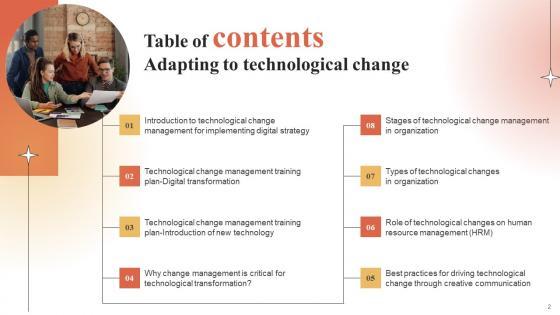 From laying roadmaps to briefing everything in detail, our templates are perfect for you. You can set the stage with your presentation slides. All you have to do is download these easy to edit and customizable templates. Table Of Contents Adapting To Technological Change Topics Pdf will help you deliver an outstanding performance that everyone would remember and praise you for. Do download this presentation today. Our Table Of Contents Adapting To Technological Change Topics Pdf are topically designed to provide an attractive backdrop to any subject. Use them to look like a presentation pro.