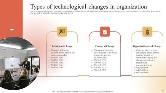 This slide represents the types of the changes implemented to introduce new technologies and systems in the organization to improve business processes. It includes types of technological changes such as anticipated changes, emergent changes etc. Slidegeeks is here to make your presentations a breeze with Types Of Technological Changes Organization Adapting To Technological Change Diagrams Pdf With our easy to use and customizable templates, you can focus on delivering your ideas rather than worrying about formatting. With a variety of designs to choose from, you are sure to find one that suits your needs. And with animations and unique photos, illustrations, and fonts, you can make your presentation pop. So whether you are giving a sales pitch or presenting to the board, make sure to check out Slidegeeks first This slide represents the types of the changes implemented to introduce new technologies and systems in the organization to improve business processes. It includes types of technological changes such as anticipated changes, emergent changes etc.