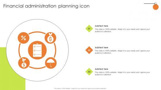 Showcasing this set of slides titled Financial Administration Planning Icon Download Pdf. The topics addressed in these templates are Financial Management, Planning Icon. All the content presented in this PPT design is completely editable. Download it and make adjustments in color, background, font etc. as per your unique business setting. Our Financial Administration Planning Icon Download Pdf are topically designed to provide an attractive backdrop to any subject. Use them to look like a presentation pro.