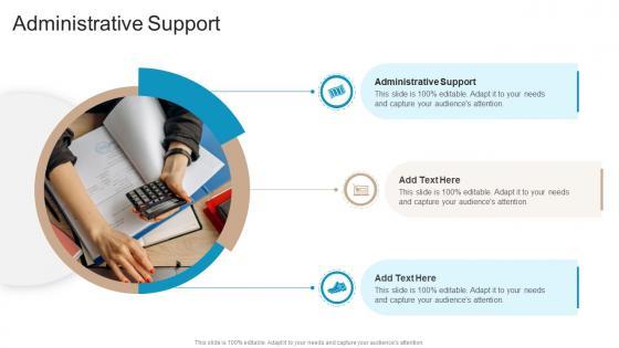 Introducing our well designed Administrative Support In Powerpoint And Google Slides Cpb. This PowerPoint design presents information on topics like Administrative Support. As it is predesigned it helps boost your confidence level. It also makes you a better presenter because of its high quality content and graphics. This PPT layout can be downloaded and used in different formats like PDF, PNG, and JPG. Not only this, it is available in both Standard Screen and Widescreen aspect ratios for your convenience. Therefore, click on the download button now to persuade and impress your audience. Our Administrative Support In Powerpoint And Google Slides Cpb are topically designed to provide an attractive backdrop to any subject. Use them to look like a presentation pro.