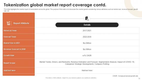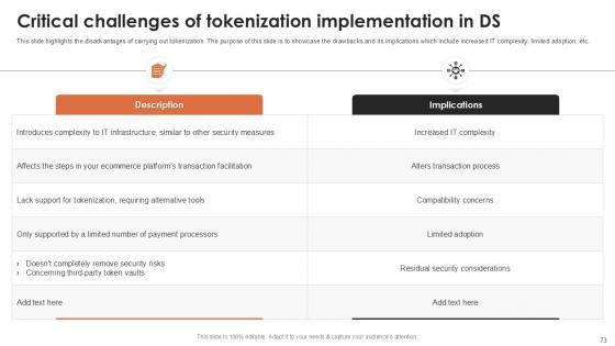 Use this Role of Tokenization in Advancing Data Security PPT Example to ensure the business world gets to know you as a presentation expert with tremendous recall value. With its focus on providing the worlds best designs to highlight business ideas that have the potential to change the world, this PPT Template is sure to win you clients. The complete deck in eighty three slides is a compendium of information, structured in a manner that provides the best framework for a presentation. Use this completely editable and customizable presentation to make an impact and improve your order book. Download now. Our Role of Tokenization in Advancing Data Security PPT Example are topically designed to provide an attractive backdrop to any subject. Use them to look like a presentation pro.