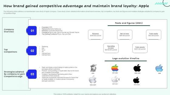 The following slide outlines a comprehensive case study of Apple company. Case study covers detailed information about brand overview, top competitors, key facts and figures and multiple strategies adopted by company to gain competitive edge.If your project calls for a presentation, then Slidegeeks is your go to partner because we have professionally designed, easy to edit templates that are perfect for any presentation. After downloading, you can easily edit How Brand Gained Competitive Advantage Strategies For Enhancing Sales And Professional Pdf and make the changes accordingly. You can rearrange slides or fill them with different images. Check out all the handy templates The following slide outlines a comprehensive case study of Apple company. Case study covers detailed information about brand overview, top competitors, key facts and figures and multiple strategies adopted by company to gain competitive edge.