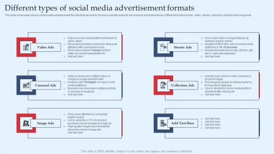 Different Types Of Social Media Advertisement Formats Ppt PowerPoint Presentation Diagram Images PDF