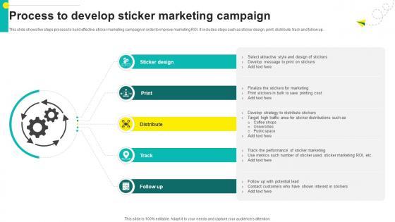 This slide shows five steps process to build effective sticker marketing campaign in order to improve marketing ROI. It includes steps such as sticker design, print, distribute, track and follow up. Get a simple yet stunning designed One On One Advertising Process To Develop Sticker Marketing Campaign Strategy SS V. It is the best one to establish the tone in your meetings. It is an excellent way to make your presentations highly effective. So, download this PPT today from Slidegeeks and see the positive impacts. Our easy-to-edit One On One Advertising Process To Develop Sticker Marketing Campaign Strategy SS V can be your go-to option for all upcoming conferences and meetings. So, what are you waiting for Grab this template today. This slide shows five steps process to build effective sticker marketing campaign in order to improve marketing ROI. It includes steps such as sticker design, print, distribute, track and follow up.