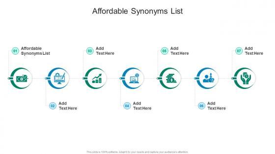 Presenting our innovatively-designed set of slides titled Affordable Synonyms List In Powerpoint And Google Slides Cpb. This completely editable PowerPoint graphic exhibits Affordable Synonyms List that will help you convey the message impactfully. It can be accessed with Google Slides and is available in both standard screen and widescreen aspect ratios. Apart from this, you can download this well-structured PowerPoint template design in different formats like PDF, JPG, and PNG. So, click the download button now to gain full access to this PPT design. Our Affordable Synonyms List In Powerpoint And Google Slides Cpb are topically designed to provide an attractive backdrop to any subject. Use them to look like a presentation pro.
