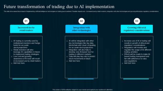 This slide shows information which can be used to understand the applications of generative AI in investment banking operations. It includes components such as automated research, risk assessment, sentiment analysis, etc. Slidegeeks is one of the best resources for PowerPoint templates. You can download easily and regulate Applications Of Generative Ai In Investment Banking Mastering Investment Banking Fin SS V for your personal presentations from our wonderful collection. A few clicks is all it takes to discover and get the most relevant and appropriate templates. Use our Templates to add a unique zing and appeal to your presentation and meetings. All the slides are easy to edit and you can use them even for advertisement purposes. This slide shows information which can be used to understand the applications of generative AI in investment banking operations. It includes components such as automated research, risk assessment, sentiment analysis, etc.