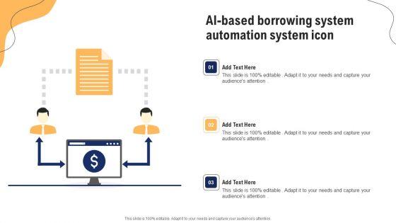 Presenting AI Based Borrowing System Automation System Icon Ppt Gallery Summary PDF to dispense important information. This template comprises three stages. It also presents valuable insights into the topics including AI Based, Borrowing System, Automation System, Icon. This is a completely customizable PowerPoint theme that can be put to use immediately. So, download it and address the topic impactfully.