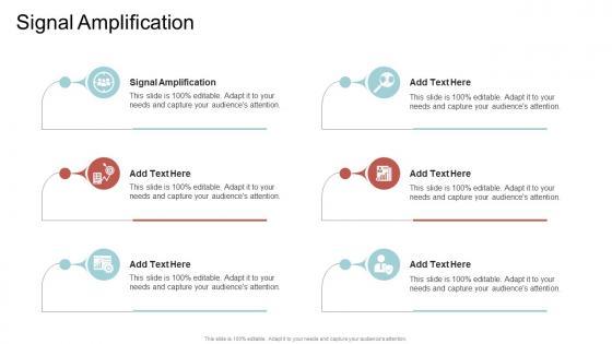 Introducing our well designed Signal Amplification In Powerpoint And Google Slides Cpb This PowerPoint design presents information on topics like Signal Amplification As it is predesigned it helps boost your confidence level. It also makes you a better presenter because of its high quality content and graphics. This PPT layout can be downloaded and used in different formats like PDF, PNG, and JPG. Not only this, it is available in both Standard Screen and Widescreen aspect ratios for your convenience. Therefore, click on the download button now to persuade and impress your audience. Our Signal Amplification In Powerpoint And Google Slides Cpb are topically designed to provide an attractive backdrop to any subject. Use them to look like a presentation pro.