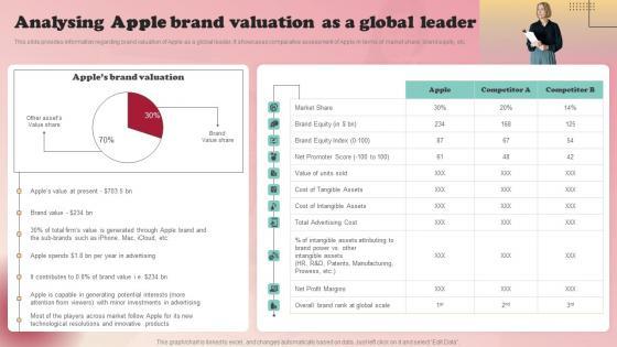 This slide provides information regarding brand valuation of Apple as a global leader. It showcases comparative assessment of Apple in terms of market share, brand equity, etc. Want to ace your presentation in front of a live audience Our Product Branding Strategy Of Apple Analysing Apple Brand Valuation Topics Pdf can help you do that by engaging all the users towards you.. Slidegeeks experts have put their efforts and expertise into creating these impeccable powerpoint presentations so that you can communicate your ideas clearly. Moreover, all the templates are customizable, and easy-to-edit and downloadable. Use these for both personal and commercial use. This slide provides information regarding brand valuation of Apple as a global leader. It showcases comparative assessment of Apple in terms of market share, brand equity, etc.