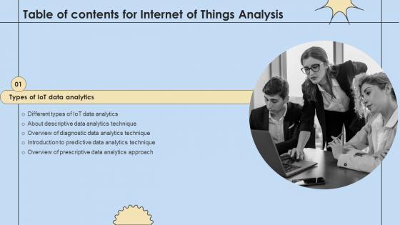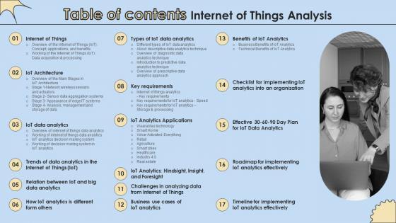 Create an editable Table Of Contents Internet Of Things Analysis Ideas Pdf that communicates your idea and engages your audience. Whether you are presenting a business or an educational presentation, pre-designed presentation templates help save time. Table Of Contents Internet Of Things Analysis Ideas Pdf is highly customizable and very easy to edit, covering many different styles from creative to business presentations. Slidegeeks has creative team members who have crafted amazing templates. So, go and get them without any delay. Our Table Of Contents Internet Of Things Analysis Ideas Pdf are topically designed to provide an attractive backdrop to any subject. Use them to look like a presentation pro.