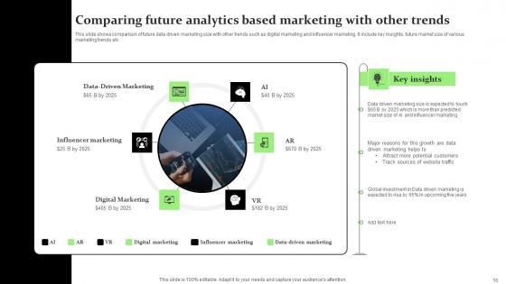 This slide shows comparison of future data driven marketing size with other trends such as digital marketing and influencer marketing. It include key insights, future market size of various marketing trends etc.Pitch your topic with ease and precision using this Comparing Future Analytics Based Marketing With Other Trends Icons Pdf This layout presents information on Influencer Marketing, Digital Marketing, Data Driven Marketing It is also available for immediate download and adjustment. So, changes can be made in the color, design, graphics or any other component to create a unique layout. This slide shows comparison of future data driven marketing size with other trends such as digital marketing and influencer marketing. It include key insights, future market size of various marketing trends etc.