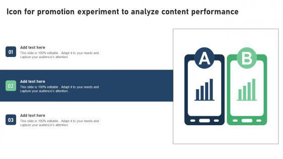 Showcasing this set of slides titled Icon For Promotion Experiment To Analyze Content Performance Graphics Pdf. The topics addressed in these templates are Icon For Promotion, Experiment To Analyze, Content Performance. All the content presented in this PPT design is completely editable. Download it and make adjustments in color, background, font etc. as per your unique business setting. Our Icon For Promotion Experiment To Analyze Content Performance Graphics Pdf are topically designed to provide an attractive backdrop to any subject. Use them to look like a presentation pro.