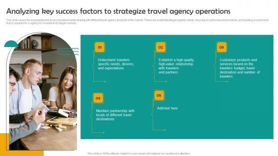 This slide covers the essential points to be considered while dealing with different travel agency products in the market. These are understanding prospects needs, focusing on outcomes and emotions, and building a solid brand that is required for a agency to compete in its target markets. Slidegeeks is here to make your presentations a breeze with Analyzing Key Success Factors To Strategize Travel Agency Vacation Planning Business Microsoft Pdf With our easy-to-use and customizable templates, you can focus on delivering your ideas rather than worrying about formatting. With a variety of designs to choose from, you are sure to find one that suits your needs. And with animations and unique photos, illustrations, and fonts, you can make your presentation pop. So whether you are giving a sales pitch or presenting to the board, make sure to check out Slidegeeks first. This slide covers the essential points to be considered while dealing with different travel agency products in the market. These are understanding prospects needs, focusing on outcomes and emotions, and building a solid brand that is required for a agency to compete in its target markets.